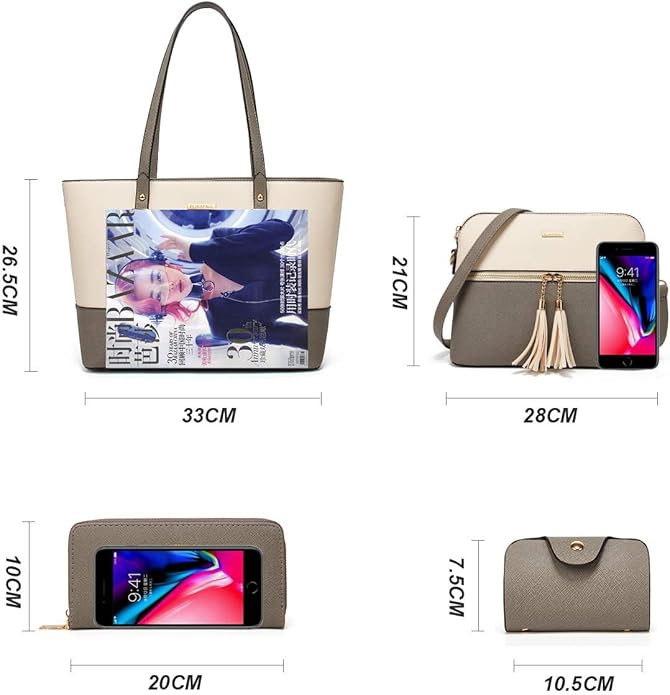 Women Fashion Handbags Wallet Tote Bag Shoulder Bag Top Handle Satchel Purse Set 4pcs